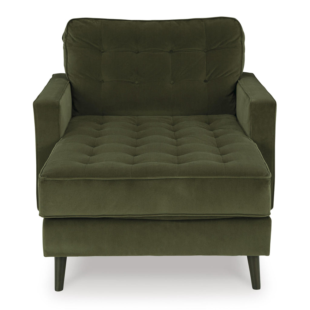 This chaise strikes the perfect balance between elevated and eclectic. Contemporary lines and a richly hued velvet upholstery keep things... This chaise strikes the perfect balance between elevated and eclectic. Contemporary lines and a richly hued velvet upholstery keep things chic. Design details like button tufting and splay legs add mod flair. It’s sure to keep your living room luxuriously on trend—at a price that won’t break the bank. View more