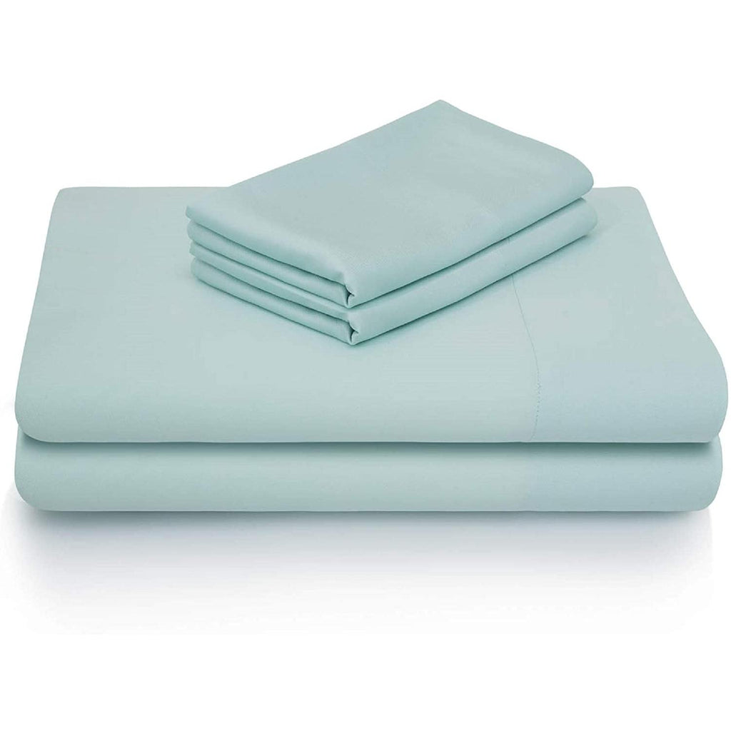 This sheet set includes one flat sheet, one fitted sheet, and two pillowcases.