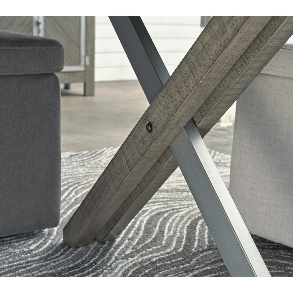 • Wood and metal base with weathered gray finish