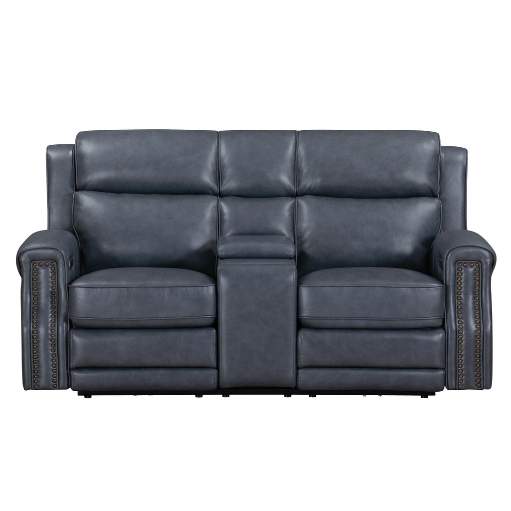 • Loveseat console features two stainless steel cupholders and a hidden storage compartment which includes a power center with on USB/USB-C port and one 110 volt charger