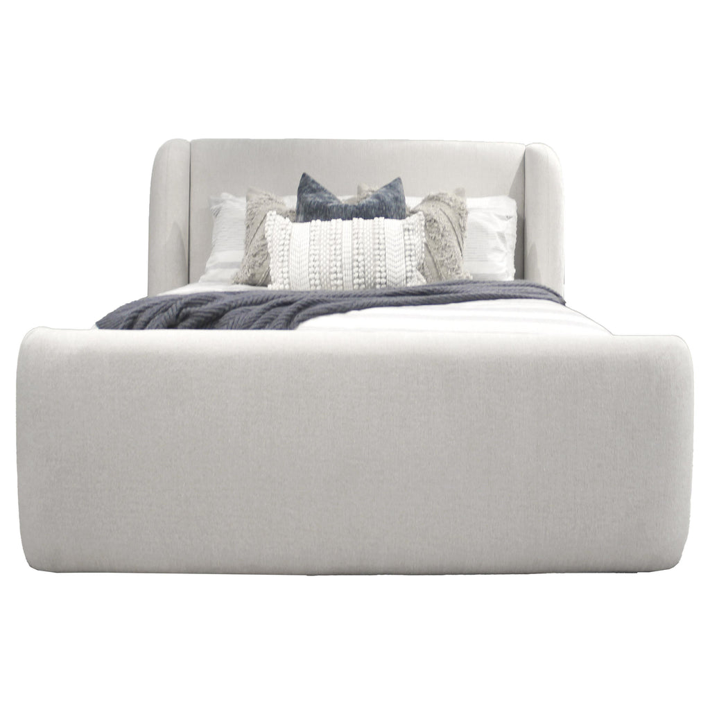 • Overstuffed wingback headboard and footboard bring a refined, transitional style