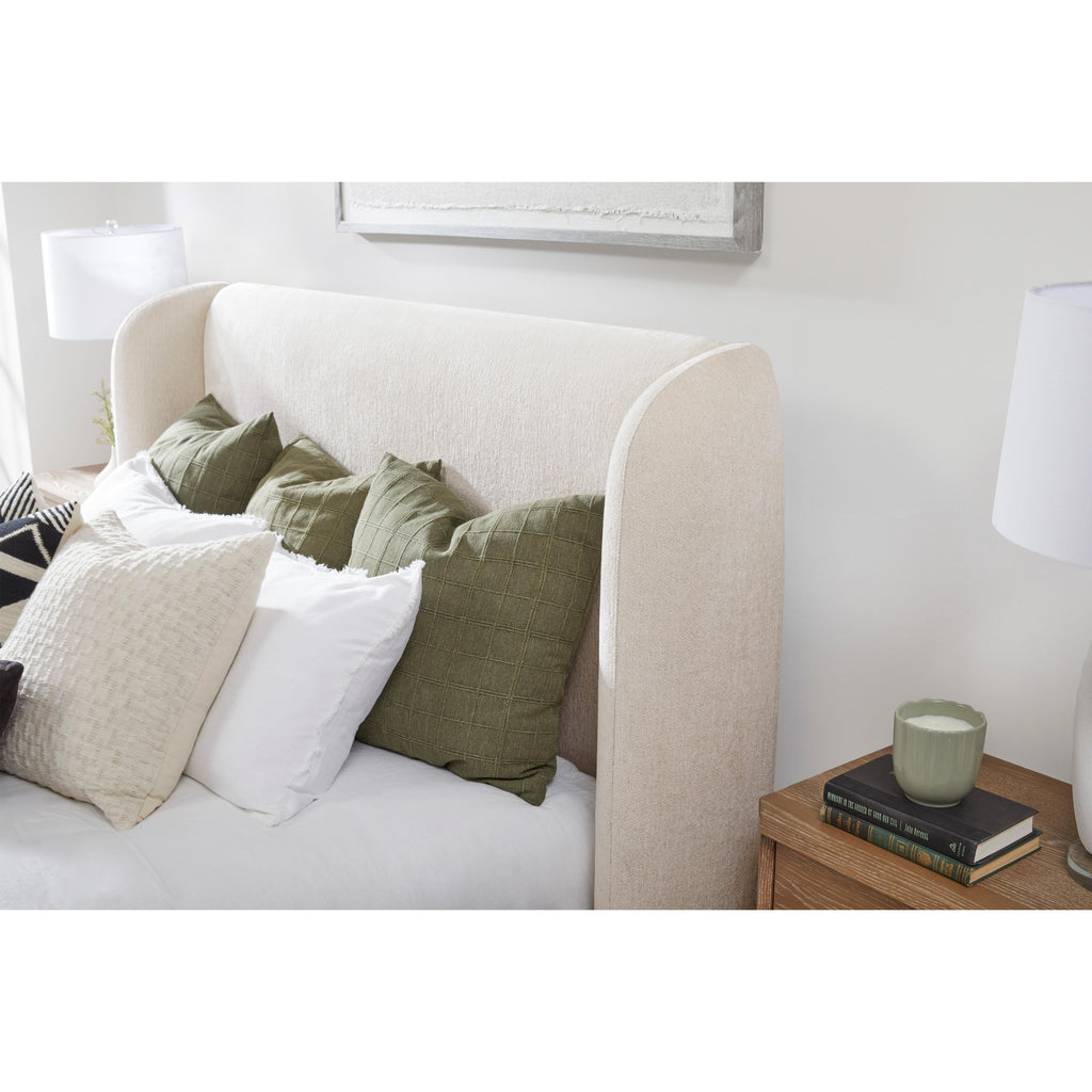 • Overstuffed wingback headboard and footboard bring a refined, transitional style
