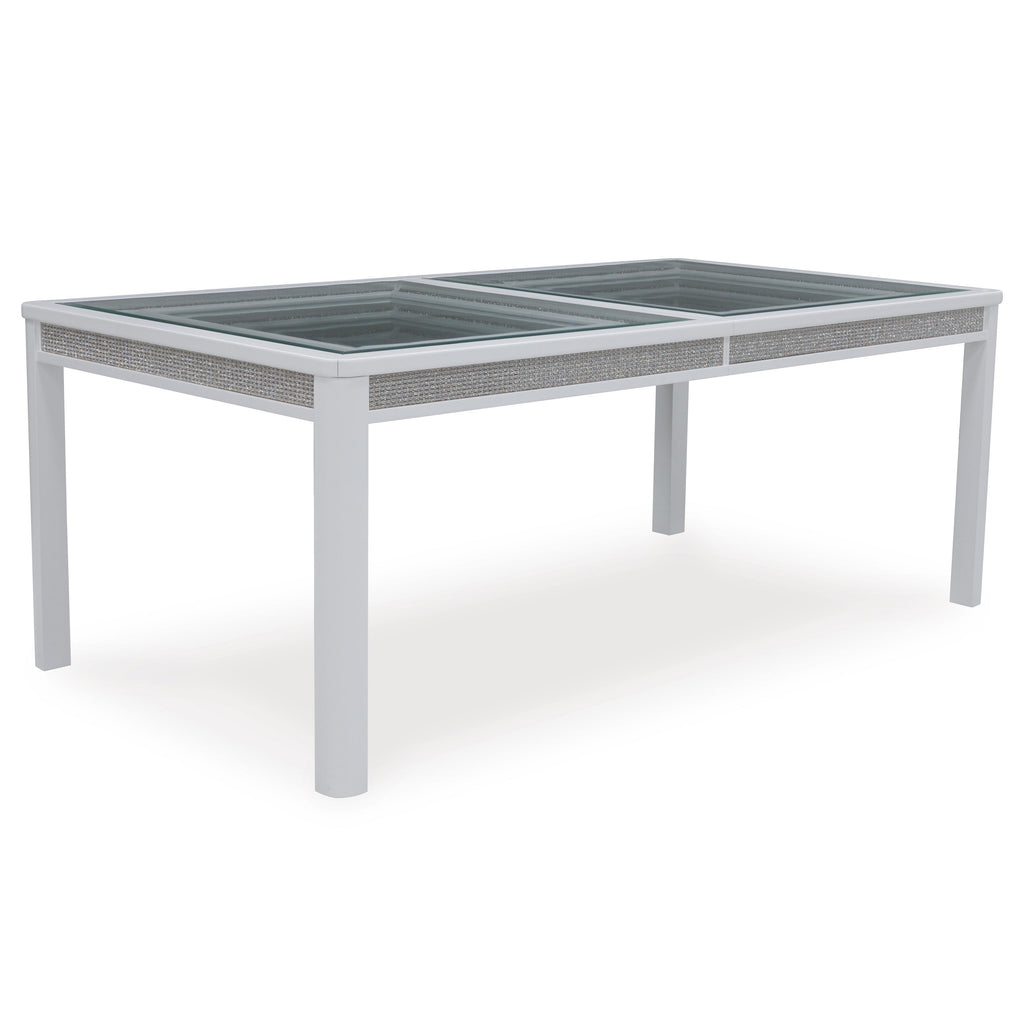 • Tabletops feature rhinestone and textured PVC framing with glass panels