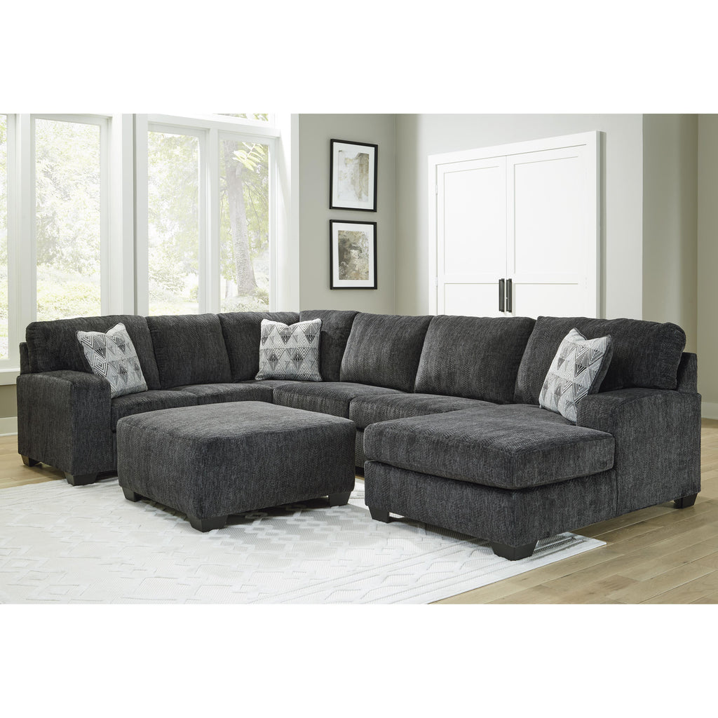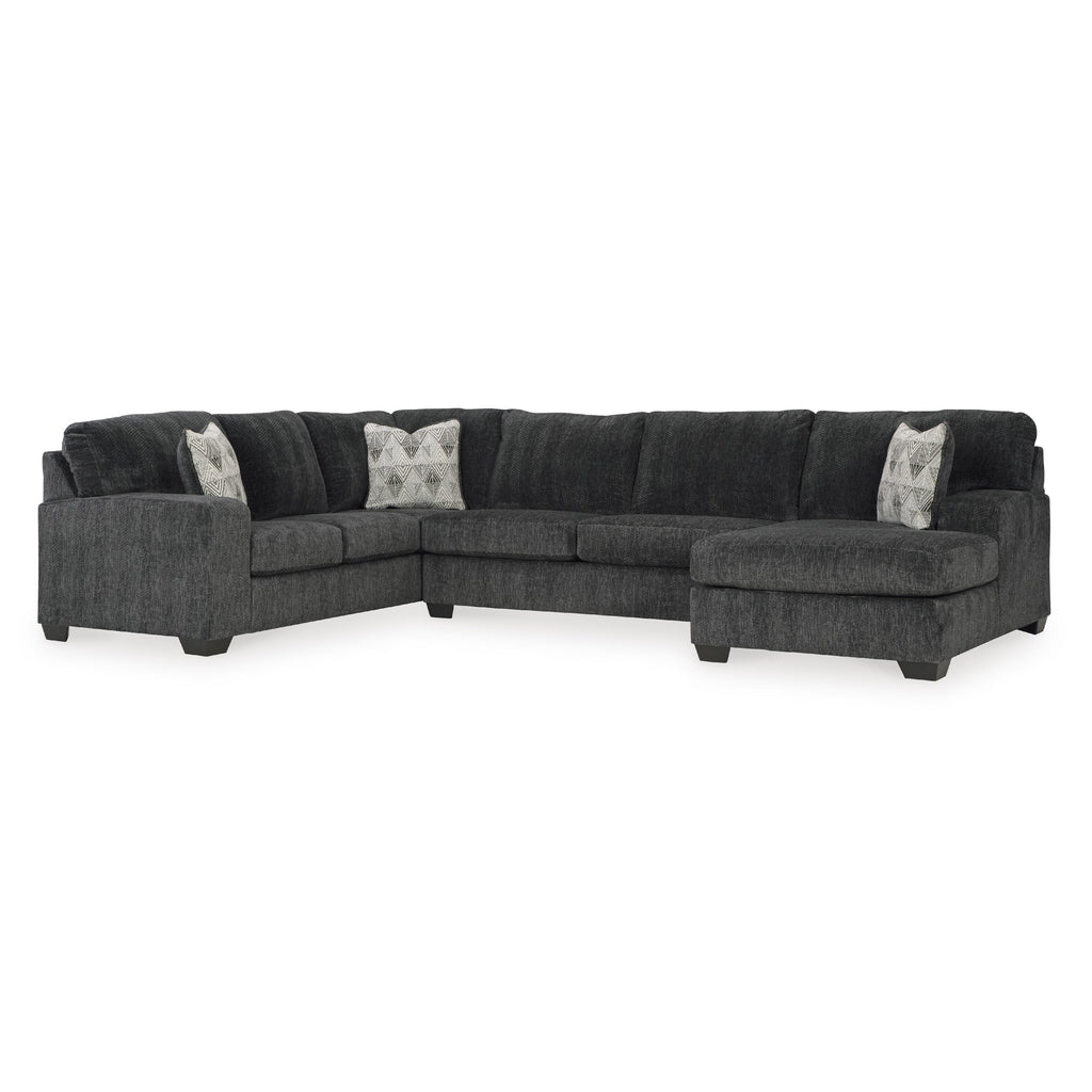 • Includes 3 pieces: right-arm facing corner chaise, armless loveseat and left-arm facing sofa