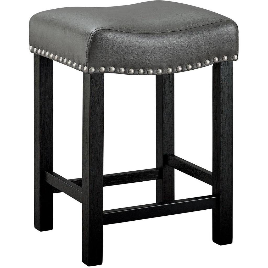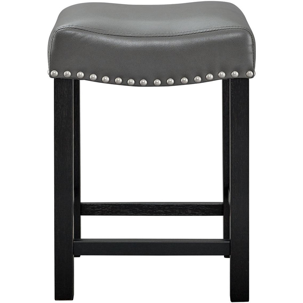• Styling details include gray vegan leather cover, nickel nailhead trim and ergnonomically cushioned and shaped seat