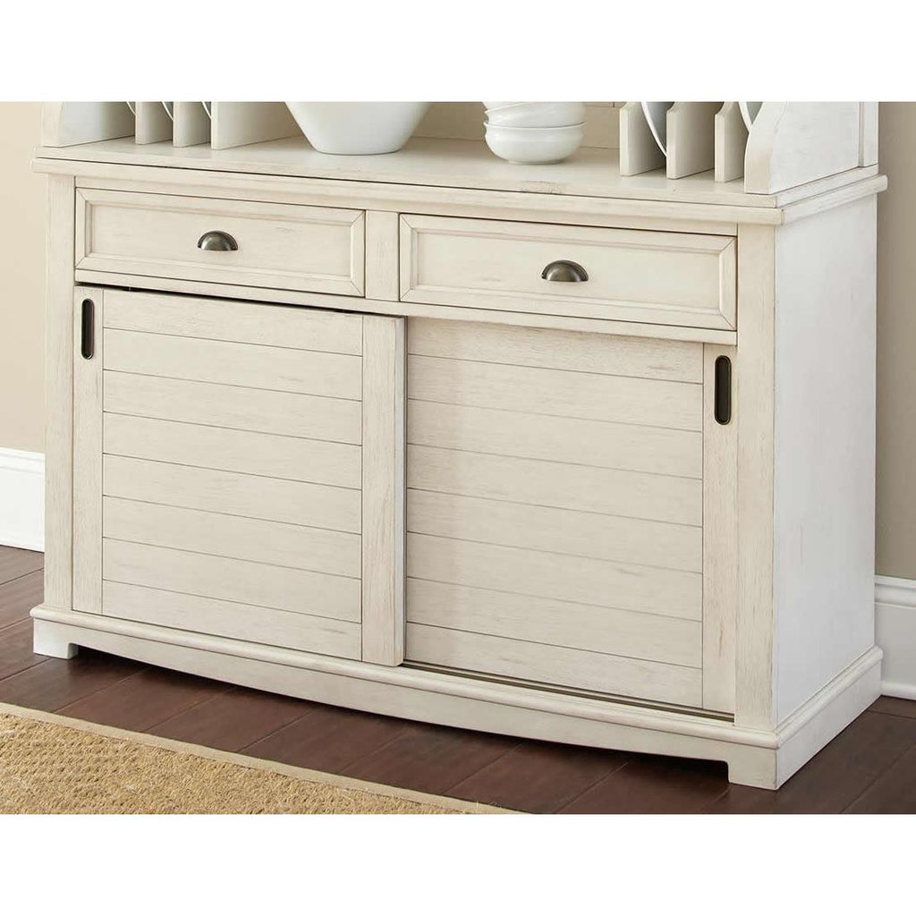 • Horizontal planked sliding doors with one adjustable shelf in each cabinet