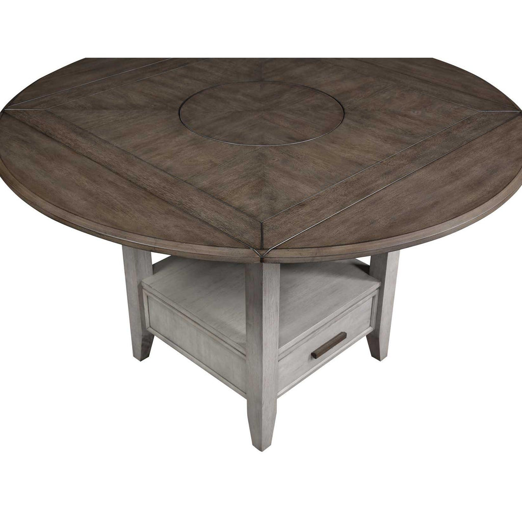 • Double Drop-Down leaves convert table top from a 42-inch square table to a 59-inch round table by lifting leaves